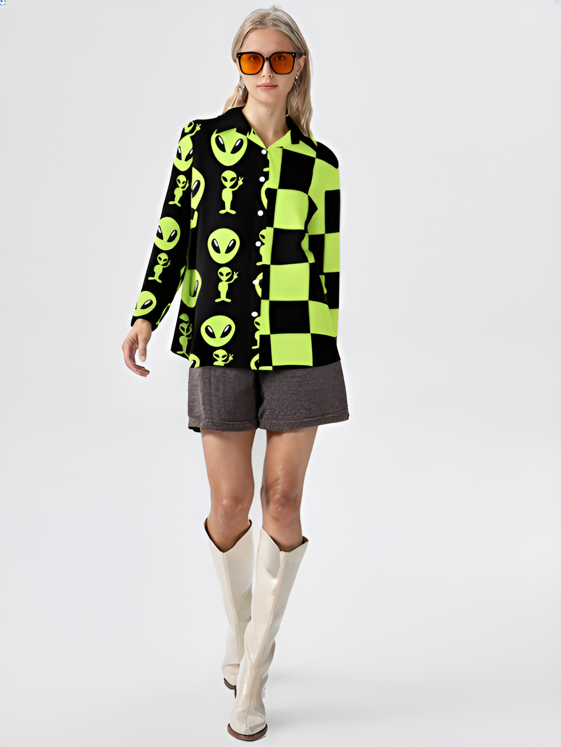 (Aesthetic fashion collection 5)๐ฅฐ๐ Women Long Sleeve Shirt AY008 (Full Printing & Multi-image Splicing)